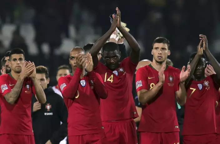 Portugal players applaud the supporters at the end of the UEFA Nations League soccer match between Portugal and Poland at the D. Afonso Henriques stadium in Guimaraes, Portugal, Tuesday, Nov. 20, 2018. (AP PhotoManuel Araujo)