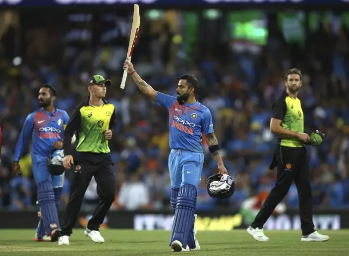 En-route, Kohil reached his 19th Twenty20 international half century from 35 balls, urged on by a capacity crowd at the Sydney Cricket Ground in which India fans overwhelmingly outnumbered Australians.