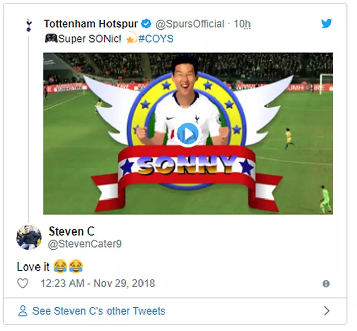 So good was the South Korean’s effort that Tottenham have given it the video-game treatment, further illustrating just how the 26-year-old sliced through Chelsea’s defence like a knife through butter.