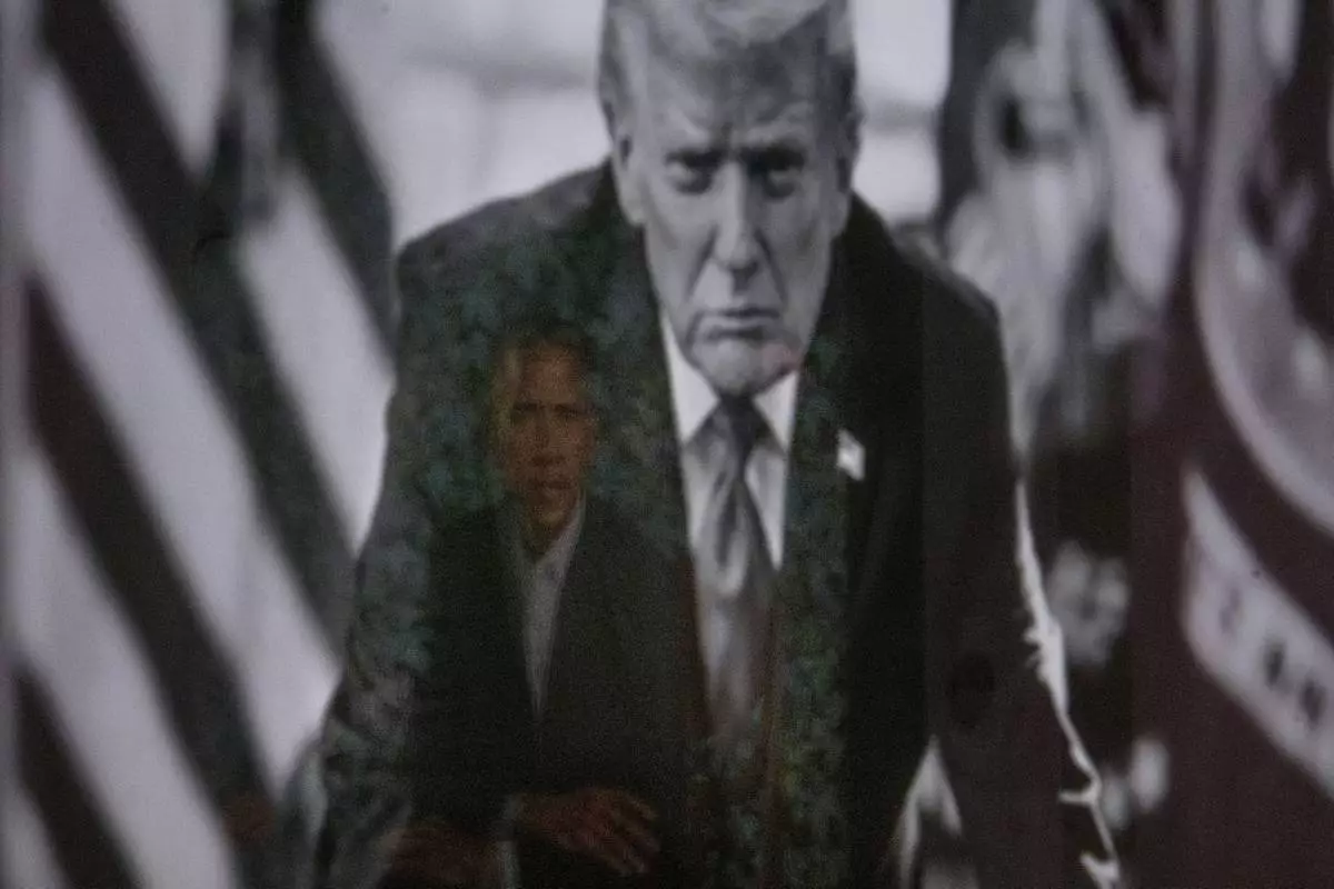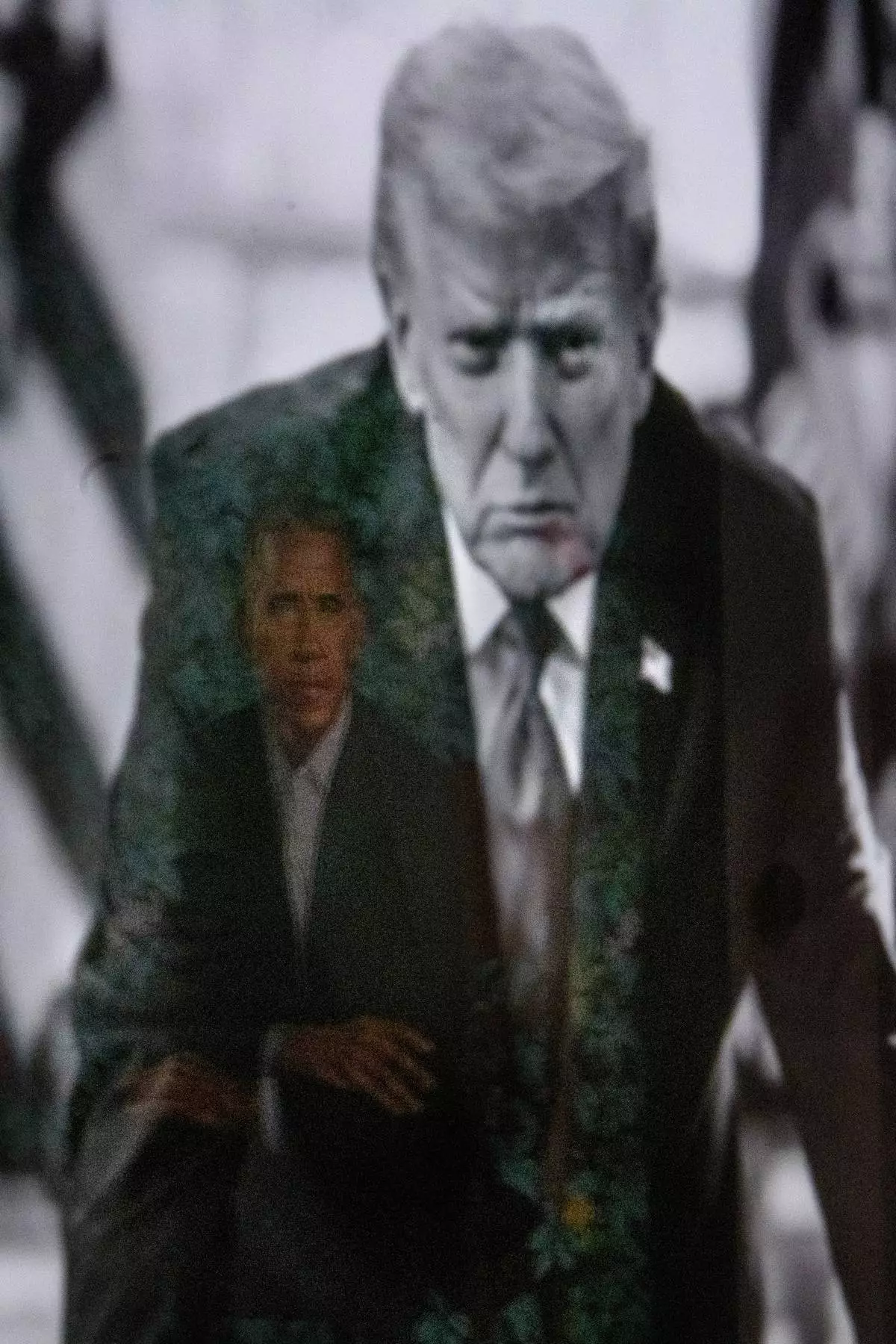 A reflection of the portrait of former President Barack Obama is seen in a photograph of President Donald Trump on display at the Smithsonian's National Portrait Gallery's "American Presidents" exhibit on Sunday, Jan. 11, 2026 in Washington. (AP Photo/Rod Lamkey, Jr.)