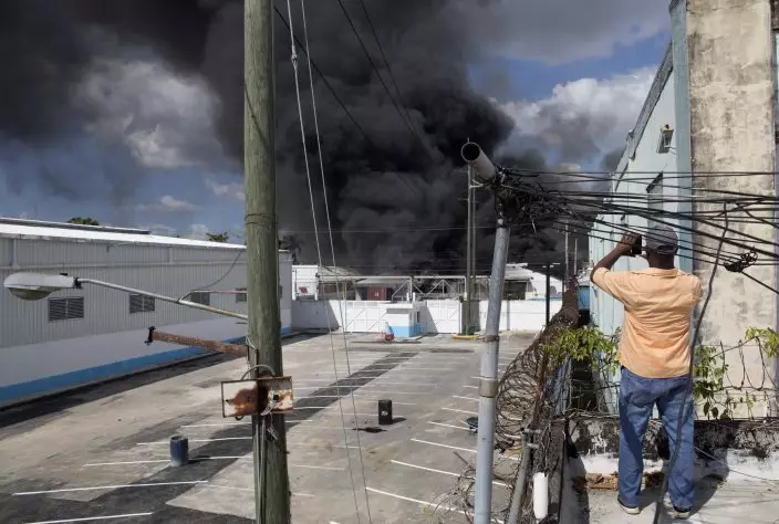 A black plume of smoke rises after an explosion at the Polyplas plant in the Villas Agricolas neighborhood in Santo Domingo, Dominican Republic, Wednesday, Dec. 5, 2018. The mayor told reporters the fire began when a boiler exploded early Wednesday afternoon at the plastics company. Authorities say at least two people have died. (AP PhotoTatiana Fernandez)
