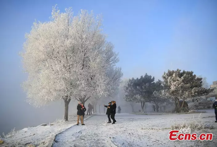 Photo shows breathtaking rime scenery along the Songhua River in Jilin City, Jilin Province.