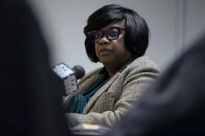 Vanessa Garrett Harley, Deputy Managing Director for Criminal Justice and Public Safety, speaks with members of the media in Philadelphia, Monday, Dec. 17, 2018. Philadelphia's homicide rate is the highest in over a decade, as a particularly violent summer morphed into a deadly fall and the mayor declared gun violence a public health emergency. (AP PhotoMatt Rourke)