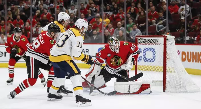 Nashville increased its lead to 3-1 after Chicago defenseman Connor Murphy was penalized for hooking in the second. Forsberg beat Delia with a wrist shot at 16:26 for his first goal since Nov. 21.