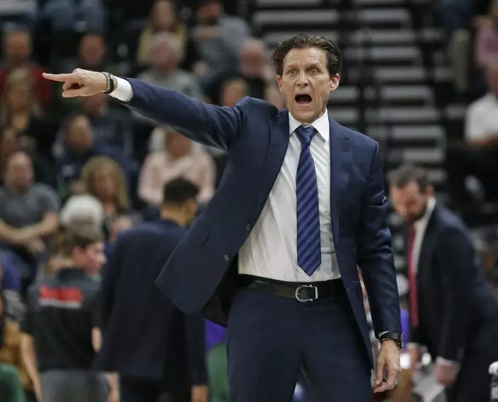 Utah Jazz coach Quin Snyder shouts to his team during the first half of an NBA basketball game against the Orlando Magic on Wednesday, Jan. 9, 2019, in Salt Lake City. (AP PhotoRick Bowmer)