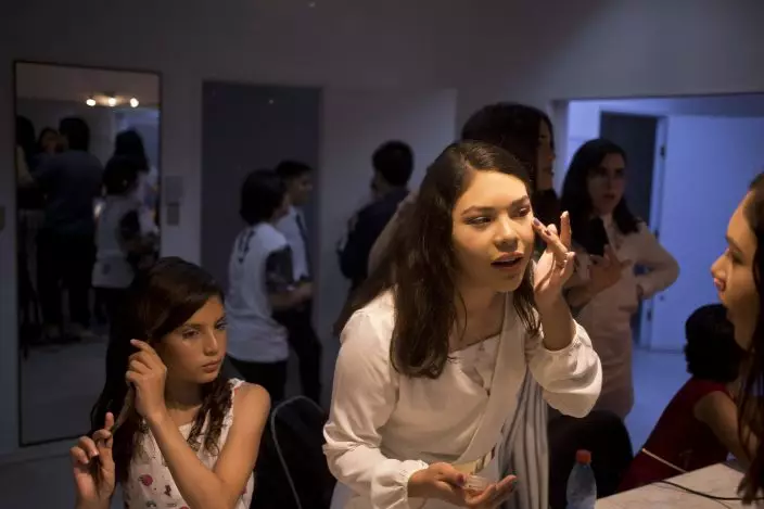 In this Dec.18, 2018 photo, transgender children prepare to attend the graduation ceremony at the Amaranta Gomez school in Santiago, Chile. Since its start, school attendance has grown from the original five students to 22 in December, and six more have already enrolled for this year. (AP PhotoEsteban Felix)