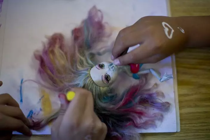 In this Dec.12, 2018 photo, transgender girls plays with a doll at the Amaranta Gomez school in Santiago, Chile. Although space is limited, parents say students have regained their confidence: They seem happier, more relaxed and eager to participate in class. (AP PhotoEsteban Felix)