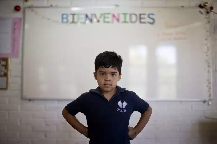In this Dec.12, 2018 photo, Alexis, a transgender boy, poses for a photo at the Amaranta Gomez school in Santiago, Chile. "I'm happy here because there are many other kids just like me," said Alexis, who also said that he was constantly bullied at his previous school. (AP PhotoEsteban Felix)