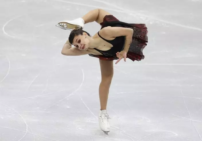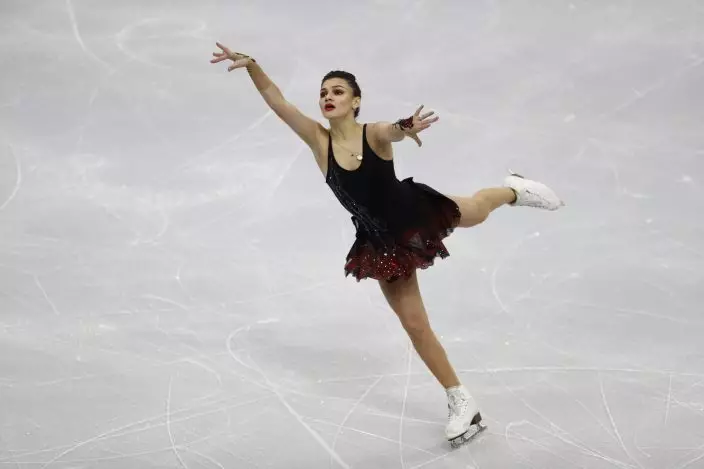 Switzerland's Alexia Paganini performs in the ladies short program at the ISU European figure skating championships in Minsk, Belarus, Wednesday, Jan. 23, 2019. (AP PhotoSergei Grits)