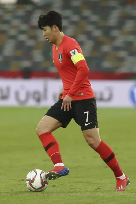 South Korea's forward Son Heung-Min runs with the ball during the AFC Asian Cup quarterfinal soccer match between Korea Republic and Qatar at the Zayed Sport City Stadium in Abu Dhabi, United Arab Emirates, Friday, Jan. 25, 2019. (AP PhotoKamran Jebreili)