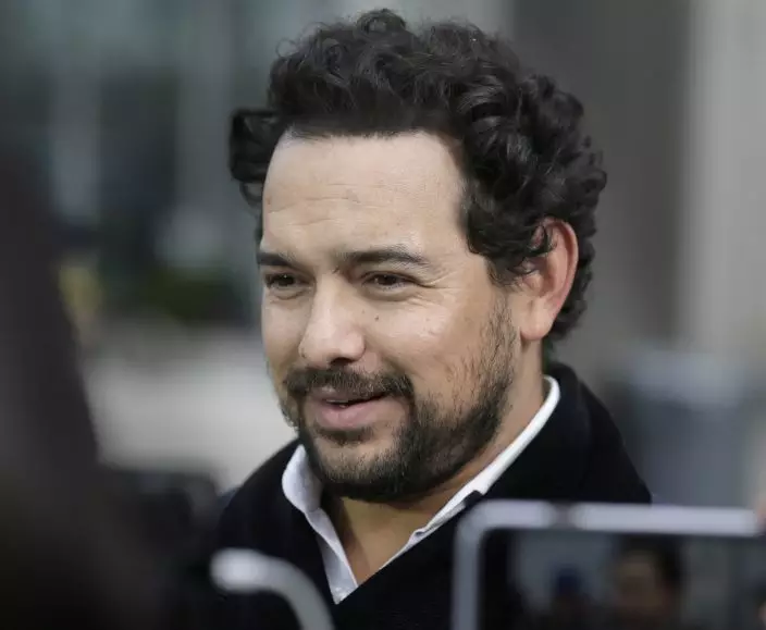 Actor Alejandro Edda talks to reporters outside federal court in the Brooklyn borough of New York, Monday, Jan. 28, 2019. The actor, who portrayed the notorious drug lord El Chapo on a Netflix series, appeared at the kingpin's trial. (AP PhotoSeth Wenig)