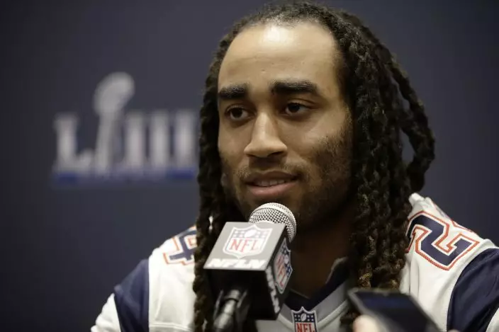 New England Patriots' Stephon Gilmore speaks with members of the media during a news conference Wednesday, Jan. 30, 2019, ahead of the NFL Super Bowl 53 football game against Los Angeles Rams in Atlanta. (AP PhotoMatt Rourke)