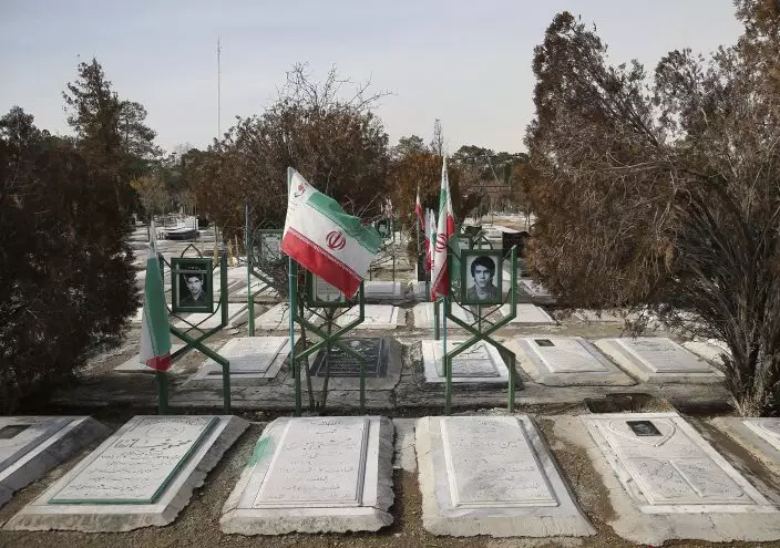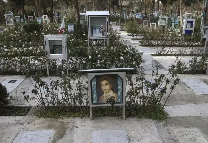 In this Saturday, Jan. 19, 2019, photo, the graves of revolutionaries who were killed during 1979 Islamic Revolution, shown at Behesht-e-Zahra cemetery, just outside Tehran, Iran. Ayatollah Ruhollah Khomeini was the face of Iran’s Islamic Revolution. His image is on bank notes and in textbooks in Iran, often as an embodiment of the Revolution that swept aside the country’s shah and forever changed the nation. (AP PhotoEbrahim Noroozi)
