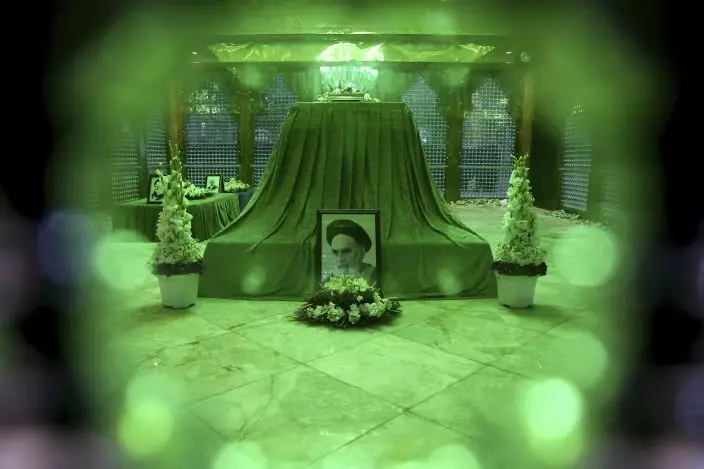 In this Saturday, Jan. 19, 2019 photo, a portrait of Ayatollah Ruhollah Khomeini is displayed at his grave, just outside of Tehran, Iran. Khomeini was the face of Iran’s Islamic Revolution His image is on bank notes and in textbooks in Iran, often as a black-and-white embodiment of the 1979 Islamic Revolution that swept aside the country’s shah and forever changed the nation. (AP PhotoEbrahim Noroozi)