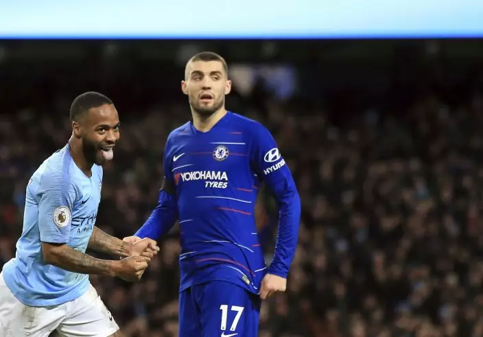 Manchester City's Raheem Sterling controls the ball during the English Premier League soccer match between Manchester City and Chelsea at Etihad stadium in Manchester, England, Sunday, Feb. 10, 2019. (AP PhotoJon Super)