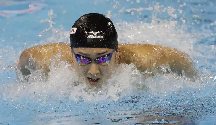 FILE - In this Dec. 11, 2016, file photo, Rikako Ikee, of Japan, competes in the women's 100-meter butterfly final at the FINA World Swimming Championships short-course Sunday, Dec. 11, 2016 in Windsor, Ontario. Ikee, the favorite for the 100-meter butterfly for the 2020 Tokyo Olympics, has been diagnosed with leukemia. Ikee said on her verified Twitter account Tuesday, Feb. 12, 2019, her illness surfaced when she got tests after returning from Australia not feeling well. (AP PhotoDavid J. Phillip, File)