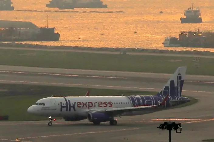 In this March 26, 2019 photo, a Hong Kong Express Airways passenger aircraft lands at the Hong Kong International Airport. Cathay Pacific Airways is acquiring Hong Kong-based budget airline HK Express. Cathay said Wednesday, March 27, 2019, it will pay 4.93 billion Hong Kong dollars ($628 million) for HK Express. It said the acquisition will retain its identity as a separate brand and be operated as a low-cost carrier. (AP PhotoKin Cheung)