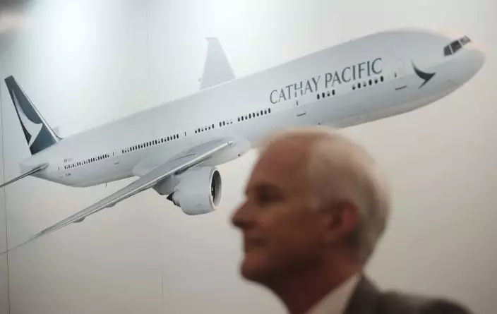 FILE - In this Aug. 16, 2017, file photo, Cathay Pacific Chairman John Slosar attends a news conference in Hong Kong. Cathay Pacific Airways is acquiring Hong Kong-based budget airline HK Express. Cathay said Wednesday, March 27, 2019, it will pay 4.93 billion Hong Kong dollars ($628 million) for HK Express. It said the acquisition will retain its identity as a separate brand and be operated as a low-cost carrier. (AP PhotoVincent Yu, File)
