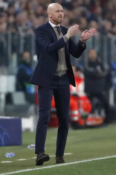 Ajax coach Erik Ten Hag gestures during the Champions League quarter final, second leg soccer match between Juventus and Ajax, at the Allianz stadium in Turin, Italy, Tuesday, April 16, 2019. (AP PhotoAntonio Calanni)