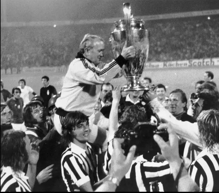 FILE - In this May 30, 1973 file photo, Ajax coach Stefan Kovacs raises the Champions Cup, carried in triumph by his players, after Ajax beat Juventus 1-0 in the final played in Belgrade. Ajax is a team that many soccer fans around the world just love to love, especially when they win with flair in a competition like the Champions League. Their victory against Juventus on Tuesday, April 16 - coming only a few weeks after the team eliminated three-time defending champion Real Madrid in the last 16 - put Ajax through to the semifinals 3-2 on aggregate. They will next face either Manchester City or Tottenham. (AP Photo,file)