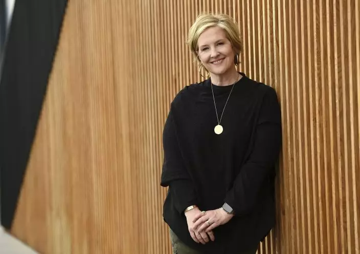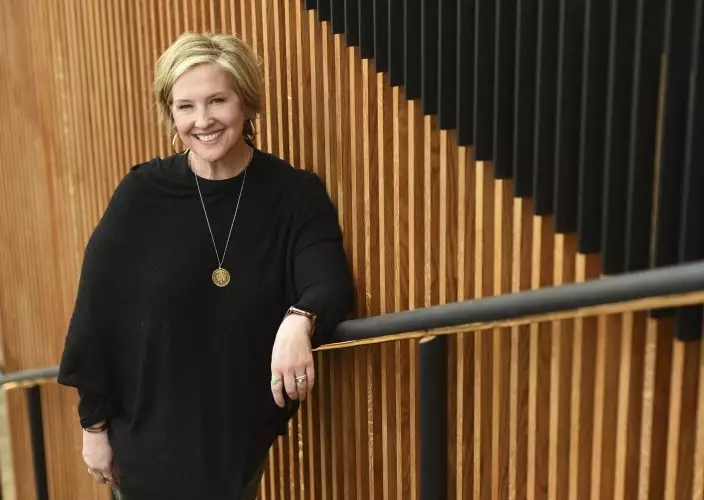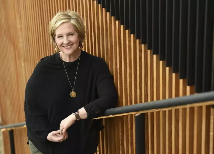 Research professor Brene Brown, star of the Netflix special "Brene Brown: The Call to Courage," poses for a portrait at Netflix's Hollywood offices, Tuesday, April 16, 2019, in Los Angeles. (Photo by Chris PizzelloInvisionAP)