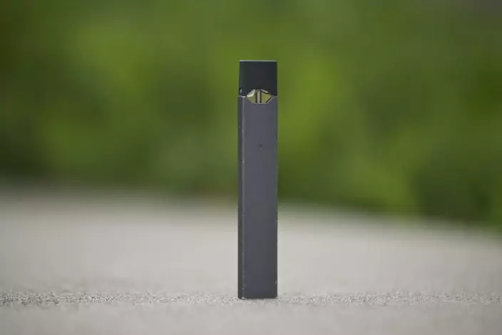 This April 16, 2019 photo shows a Juul vape pen in Vancouver, Wash. The company's rise coincided with an explosion of underage vaping by teens. As regulators and lawmakers scramble for solutions, few are talking about Juul's defining feature: a high-nicotine dose delivered via an easy-to-inhale vapor. While the company's potent formula initially set it apart from competitors, the vaping industry is now following its lead. (AP PhotoCraig Mitchelldyer)