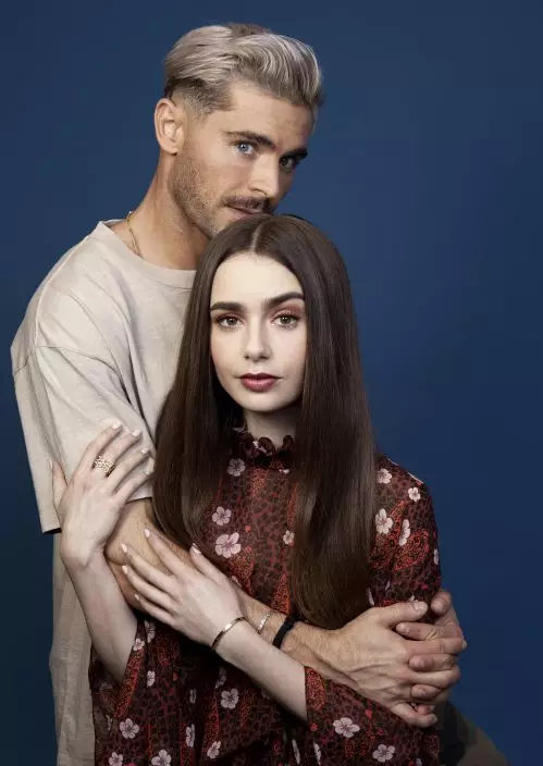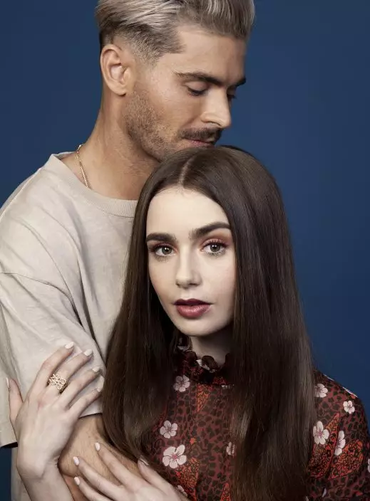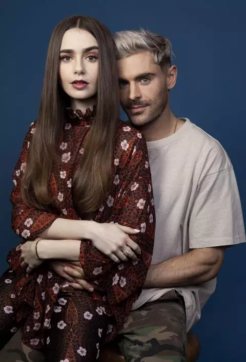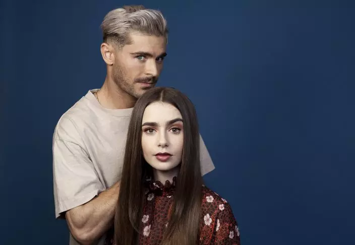 This April 22, 2019 photo shows Zac Efron, left, and Lily Collins posing for a portrait at the Four Seasons Hotel in Los Angeles to promote their film "Extremely Wicked, Shockingly Evil, and Vile". (Photo by Rebecca CabageInvisionAP)
