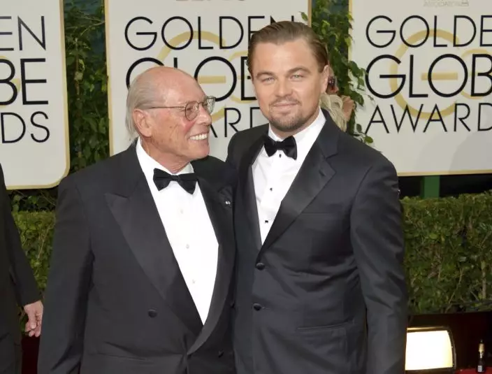 FILE - This Jan. 12, 2014 file photo shows Irwin Winkler, left, and Leonardo DiCaprio at the 71st annual Golden Globe Awards in Beverly Hills, Calif. Winkler released a new memoir, "A Life in Movies: Stories from 50 years in Hollywood." (Photo by John ShearerInvisionAP, File)
