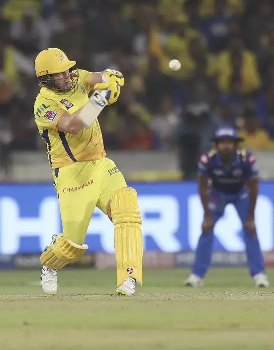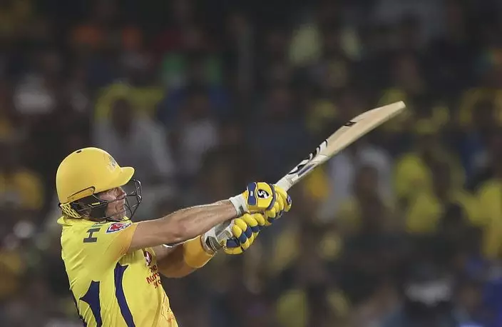 Chennai Super King's Shane Watson plays a shot during the VIVO IPL T20 cricket final match between Mumbai Indians and Chennai Super Kings in Hyderabad, India, Sunday, May 12, 2019. (AP Photo Mahesh Kumar A.)