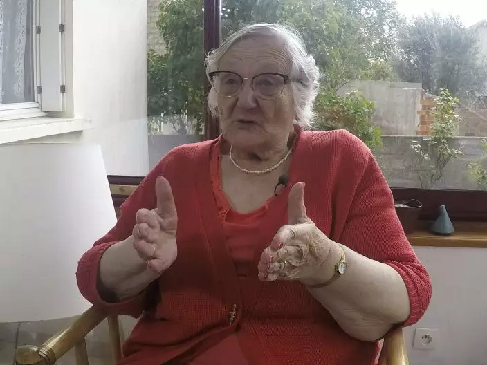 In this photo taken on Friday May 17, 2019 in Caen, Yvette Lethimonnier, 86, recounts how she and her family survived after D-Day in a Fleury-sur-Orne quarry, near Caen, Normandy. A girl of just 11 in that world-changing summer of 1944, when the Allied liberation of western Europe began, Yvette Lethimonnier, recalls with vivid clarity how their saviors, a unit of Canadian troops, saluted when they found the refugees in their cavernous hiding place. Even the most elderly clambered to their feet, roused by the thrill of sudden freedom. All their voices joined in belting out the rousing words of the French anthem: “Arise children of the fatherland, the day of glory has arrived!” (AP PhotoJohn Leicester)