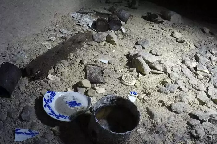 In this photo taken on Friday May 17, 2019, broken plates lie in a quarry in Fleury-sur-Orne, near Caen, Normandy. Archeologists are making 3-D models of the network of tunnels that served as a bomb shelter for hundreds of civilians during the battle of Normandy that followed D-Day. (AP PhotoJohn Leicester)