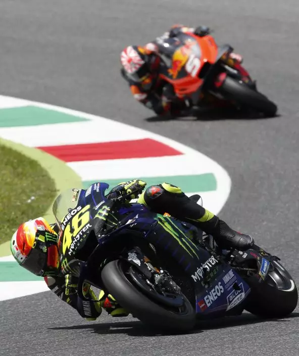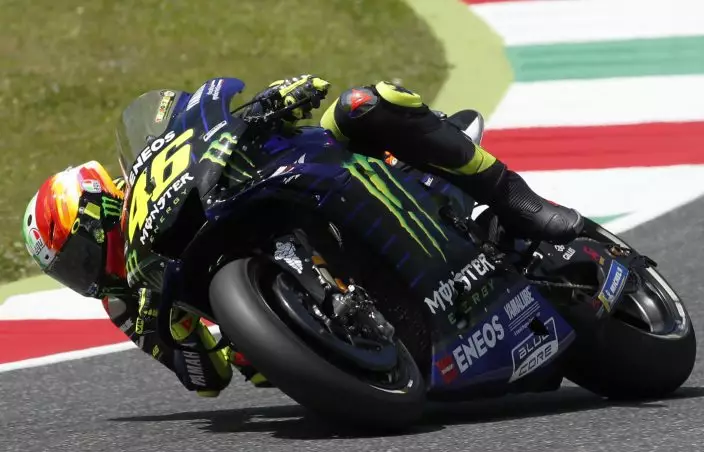 Italy's Valentino Rossi steers his Yamaha during qualifying practice for the MotoGP Grand Prix of Italy at the Mugello circuit, in Scarperia, Italy, Saturday, June 1, 2019. (AP PhotoAntonio Calanni)