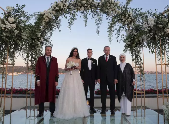 Turkey President Recep Tayyip Erdogan was in the wedding party as Arsenal midfielder Mesut Ozil tied the knot on Friday.