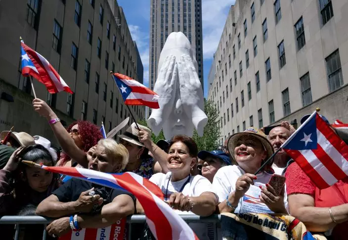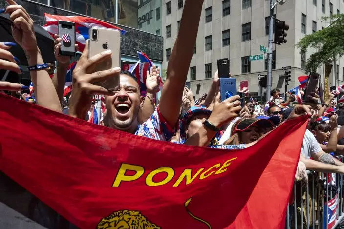 Spectators take part in the National Puerto Rican Day Parade Sunday, June 9, 2019, in New York. (AP PhotoCraig Ruttle)
