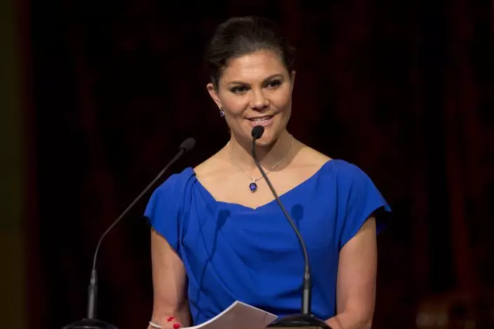 FILE - In this Wednesday, April 26, 2017 file photo, Sweden's Crown Princess Victoria delivers a speech during a ceremony marking the OPCW's 20th anniversary in The Hague, Netherlands. Sweden is sending its heir to the throne and head of government to Switzerland to support its bid in the 2026 Winter Olympics host vote on Monday, June 24, 2019. The Stockholm-Are 2026 campaign says Crown Princess Victoria is “the nation’s most popular public figure” and will join the delegation in Lausanne. (Peter Dejong, Pool Photo via AP, File)