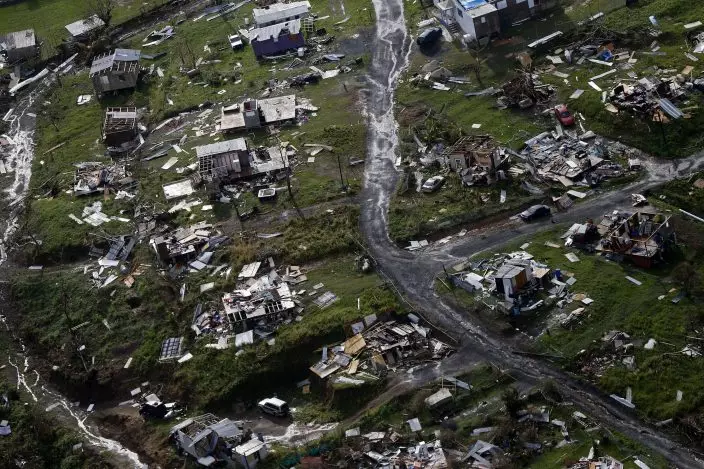 FILE - In this Sept. 28, 2017, file photo destroyed communities are seen in the aftermath of Hurricane Maria in Toa Alta, Puerto Rico. Despite the potential for hurricanes and other natural disasters, many small business owners don’t prepare for the worst, leaving them to learn during a crisis what they should have done differently. (AP PhotoGerald Herbert, File)