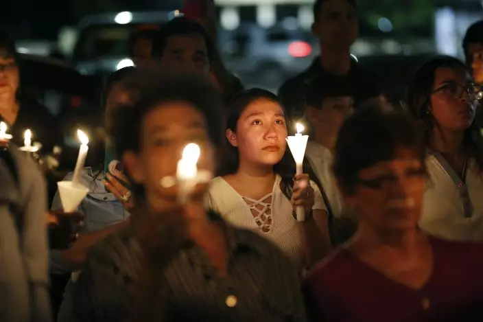 People attend a candlelight vigil for victims of a mass shooting at a shopping complex over the weekend, Monday, Aug. 5, 2019, in El Paso, Texas. (AP PhotoJohn Locher)