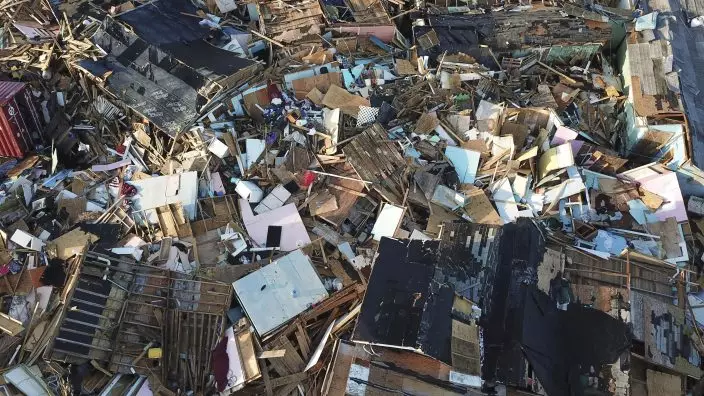 Homes lay in ruins one week after Hurricane Dorian hit The Mudd neighborhood, in the Marsh Harbor area of Abaco, Bahamas, Monday, Sept. 9, 2019. Dorian, the most powerful hurricane in the northwestern Bahamas' recorded history, has killed at least 44 people in Bahamas as of Sunday, Sept. 8, according to the government. (AP PhotoFernando Llano)