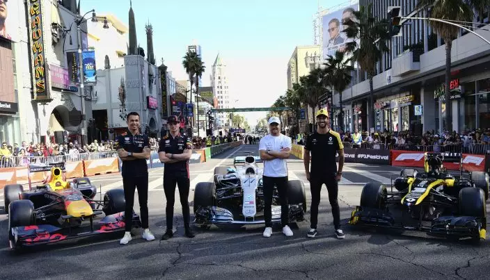 The star-strewn sidewalks along the street were thronged with thousands of fans craning for a glimpse of the drivers whose sport has worldwide popularity, but makes a relatively small imprint on the lucrative U.S. market. With the United States Grand Prix in Texas this weekend, the drivers were eager to raise F1's profile on the West Coast.