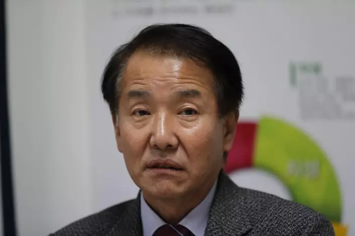 In this Nov. 6, 2019, photo, Kim Doo Yeon, principal of the alternative Great Vision School, speaks during an interview at Great Vision School in Uijeongbu, South Korea. Hundreds of children born to North Korean women and Chinese men have resettled in South Korea, but life is often tough. “Combined with South Korea’s social bias against them and their own distorted views about (the South Koreans around them), they mostly give up on opportunities to develop themselves, and this eats away at them fulfilling their potential,” said Kim, the principal of the school, where Song Hong Ryon was enrolled for two years.(AP PhotoLee Jin-man)