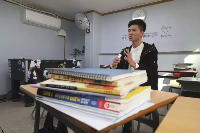 In this Nov. 1, 2019, photo, Kim Hyun-seung from Tianjin, China, 20, who came to South Korea in 2016 to reunite with his North Korean mother after a six-year separation, speaks during an interview at the South-North Love School in Seoul, South Korea. Kim arrived in South Korea three years ago to reunite with his mother, who came six years earlier. Kim’s 52-year-old mother, Kim So-yeon, described him as “a great, loyal son,” who tried not to talk much about his suffering and once cooked special foods for her on her birthday.(AP PhotoAhn Young-joon)