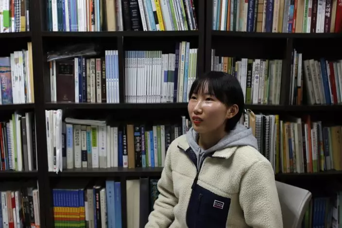 In this Nov. 6, 2019, photo, Song Hong Ryon speaks during an interview in Uijeongbu, South Korea. Song Hong Ryon looks like any other young woman in South Korea. But three years after her arrival from China, the half-North Korean, half-Chinese 19-year-old has made only two South Korean-born friends and says she’s often been hurt by little things, like when people ask if she’s from China because of her accent.(AP PhotoLee Jin-man)