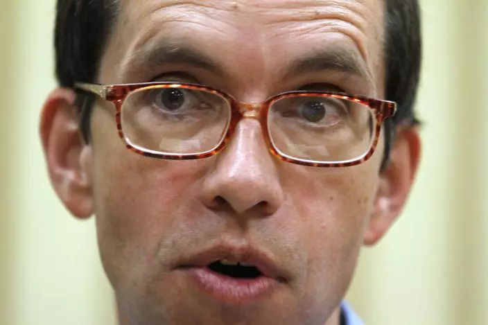FILE - This Wednesday March 9, 2011 file photo, shows Jens Soering as he speaks during an interview at the Buckingham Correctional Center in Dillwyn, Va. Soering, a German diplomat’s son who was serving a life sentence for the 1985 killings of his girlfriend’s parents, was granted parole Monday, Nov. 25, 2019 and will be released to immigration officials for deportation to Germany. (AP PhotoSteve Helber, File)