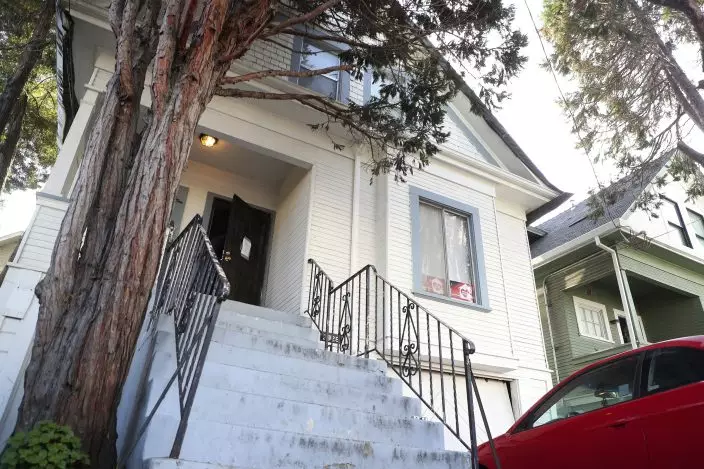 In this photo taken Dec. 24, 2019, is a home along Magnolia Street that is being occupied by the group Moms 4 Housing in West Oakland, Calif. The women took over the home after they said they were unable to find permanent housing in the Bay Area, where high-paying tech jobs have exacerbated income inequality and a housing shortage. They also say they're protesting real estate developers who snap up distressed homes, then leave them empty. (Aric CrabbBay Area News Group via AP)