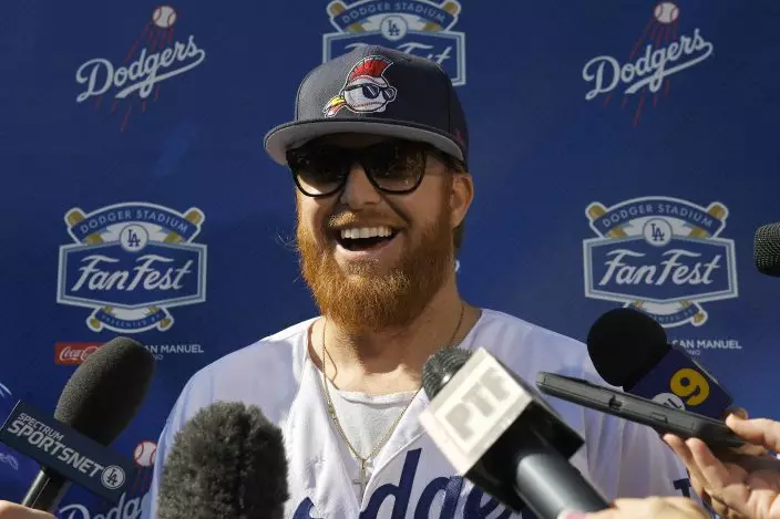 Los Angeles Dodgers' Justin Turner is interviewed by reporters during Dodger Stadium FanFest Saturday, Jan. 25, 2020, in Los Angeles. (AP PhotoMark J. Terrill)