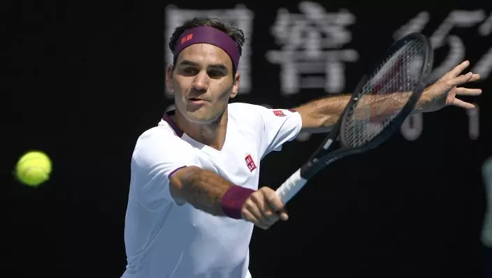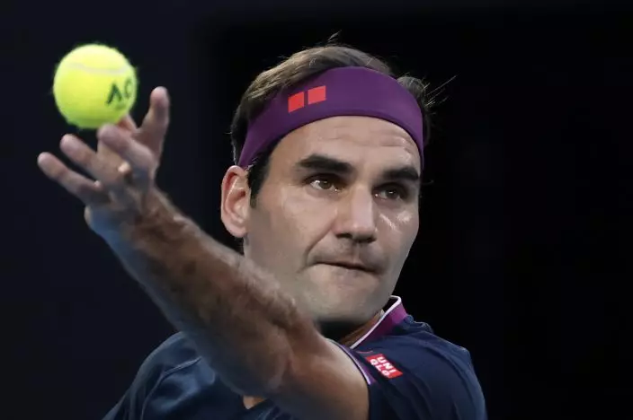 Switzerland's Roger Federer makes a backhand return to Tennys Sandgren of the U.S. during their quarterfinal match at the Australian Open tennis championship in Melbourne, Australia, Tuesday, Jan. 28, 2020. (AP PhotoAndy Brownbill)