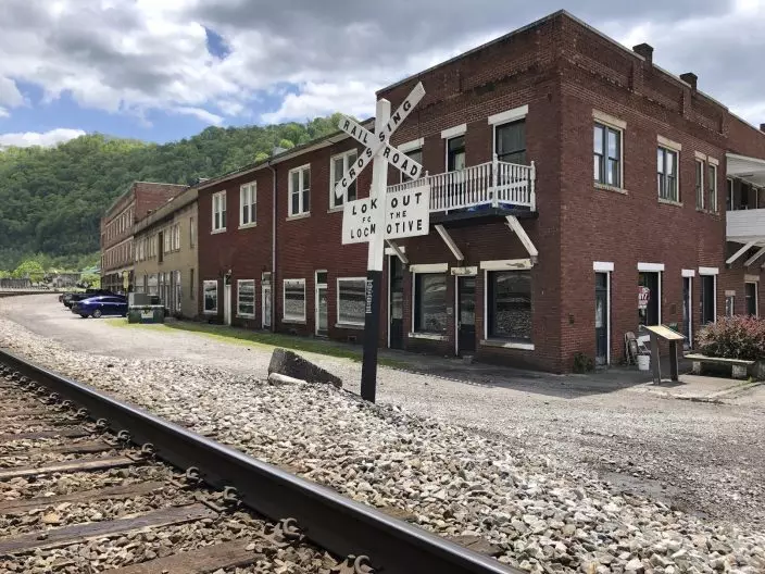 In this Tuesday, May 12, 2020, is a former corner post office in Matewan, W.Va. On May 19, 1920, coal miners, led by a local police chief, and detectives hired by a coal company to evict unionizing miners from their homes were involved in a gun battle on the street. Ten people died in the Matewan Massacre. (AP PhotoJohn Raby)