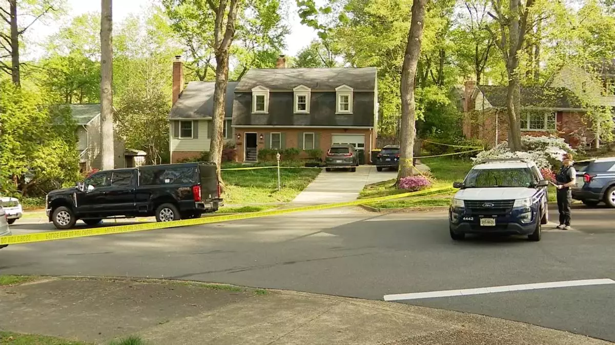 Police investigte the scene of an apparent domestic-related shooting early Thursday, April 16, 2026in Annandale, Va. (WJLA via AP)