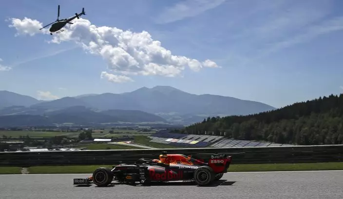 Red Bull driver Max Verstappen of the Netherlands steers his car during the first practice session for the Styrian Formula One Grand Prix at the Red Bull Ring racetrack in Spielberg, Austria, Friday, July 10, 2020. The Styrian F1 Grand Prix will be held on Sunday. (Mark ThompsonPool via AP)