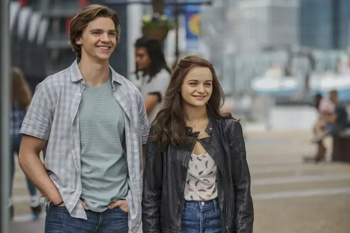 This image released by Netflix shows Joey King, left, and Taylor Perez in a scene from "The Kissing Booth 2." (Marcos CruzNetflix via AP)